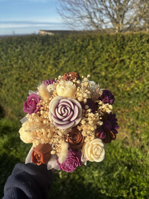 Vous aimez les fleurs, et vous souhaitez avoir une décoration fleurie qui dure dans le temps tout en parfumant délicatement votre intérieur ? Alors cette jolie composition de fleurs en cire de Soja et parfum de Grasse est faite pour vous. Pour vous, ou en cadeau cette jolie pièce fera son effet c'est certain.