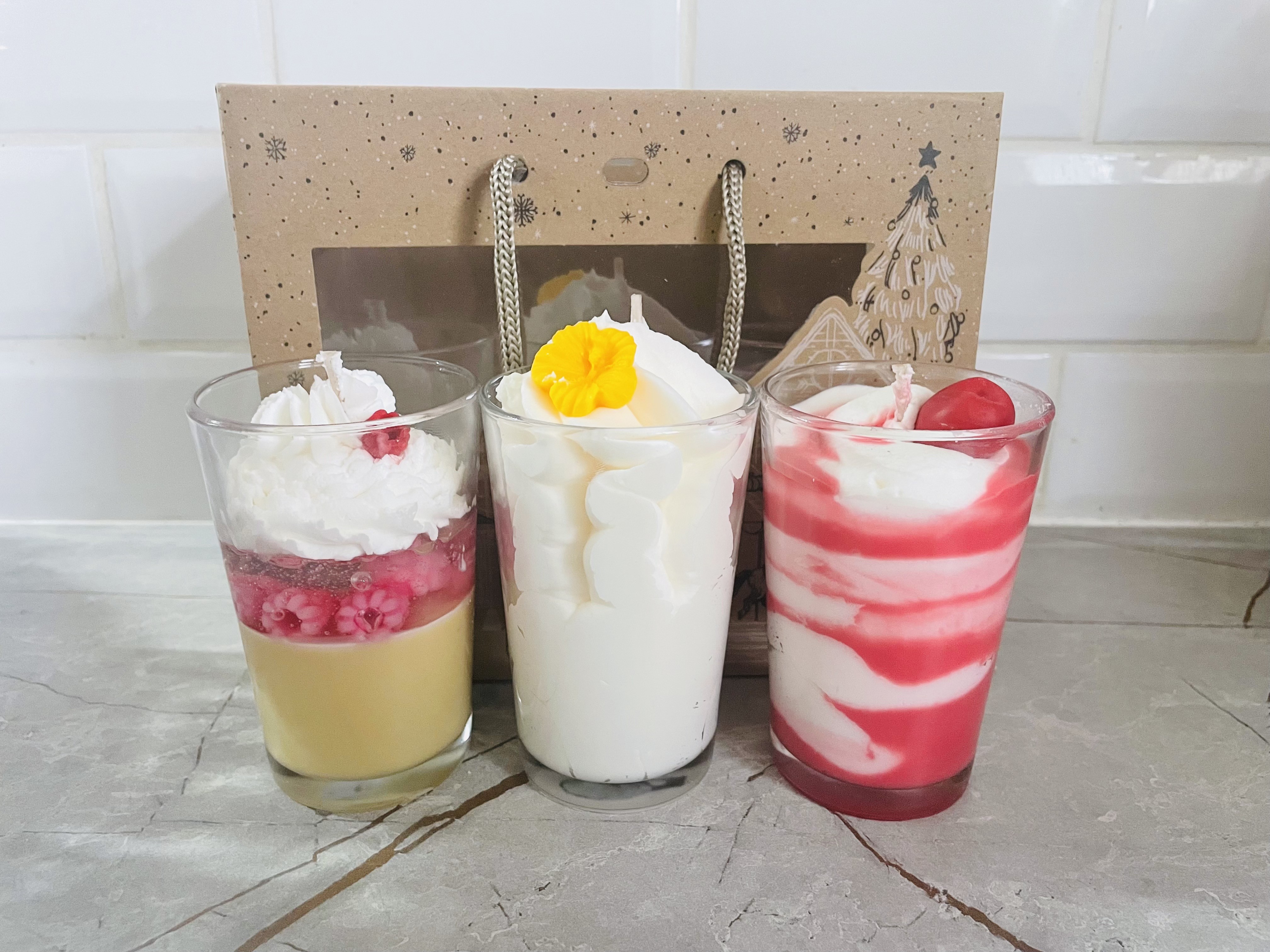 Coffret comprenant 3 mini bougies de 130g chacune .