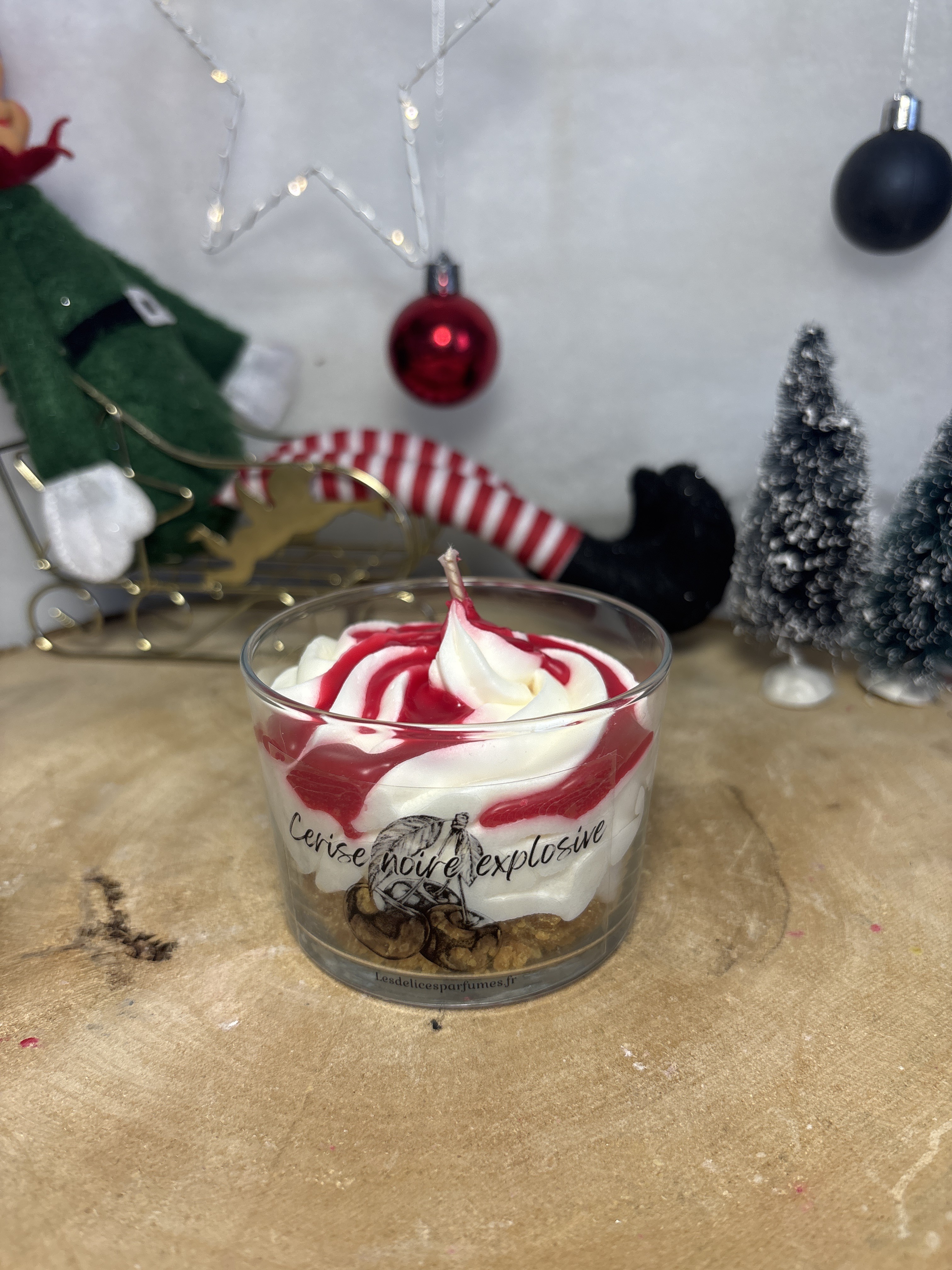 Un parfum dynamique et gourmand, qui encapsule la riche profondeur des cerises noires. La douceur de l'amande et la frangipane en tête s'ouvre sur un cœur juteux de cerise, soutenu par une base vanillée, ajoutant une touche gourmande à cette expérience olfactive explosive