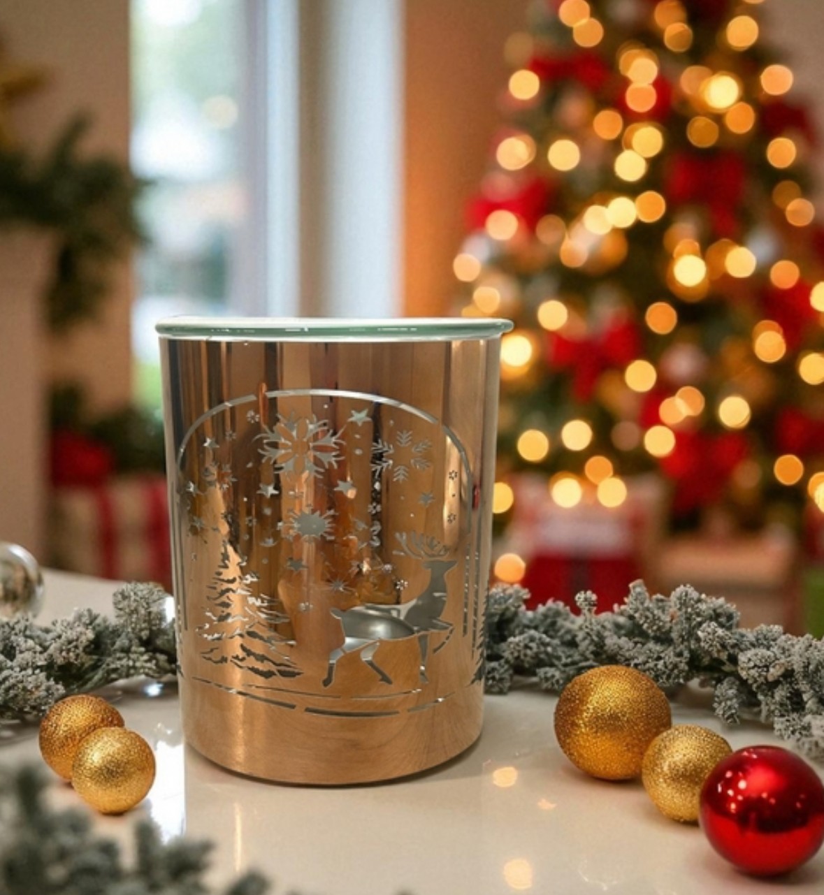 Doté d’un design en métal cuivré et d’un motif « arche de Noël »